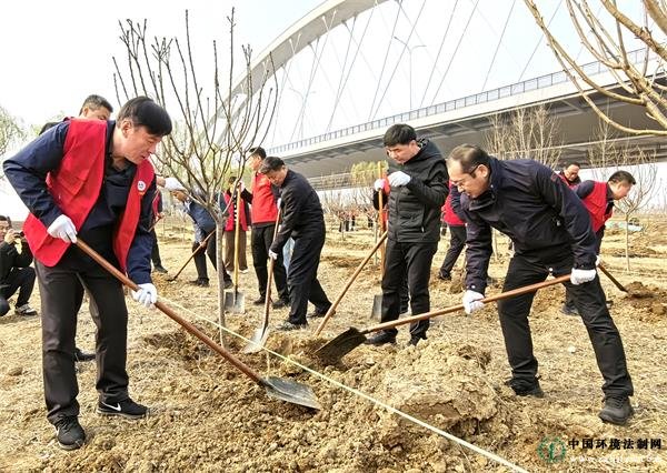 初春时节,惠风和畅,柳色新青。3月11日,在第48个植树节来临之际,山东省生态环境厅、山东省环保发展集团,济南市生态环境局、济南黄河河务局,济南市生态环境局天桥分局等单位,共同组织150余名干部职工,赴济南市天桥区南郑村旁的黄河大坝,共同开展“值此青绿,低碳同行——省市区三级联动义务植树活动”,以实际行动践行生态文明理念,守护母亲河生态安全。