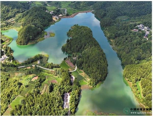 贵州省凤冈县鸳鸯湖全景。